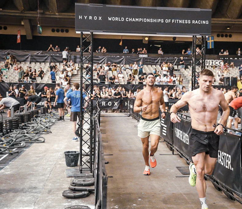 기본 형식은 단순합니다. 1km 러닝과 8개의 스테이션을 번갈아 수행하는 레이스 구조로, 러닝과 스키에르그, 썰매 밀기·끌기, 버피 멀리뛰기, 파머스 캐리, 샌드백 런, 월볼 샷 등이 정해진 순서대로 이어집니다.